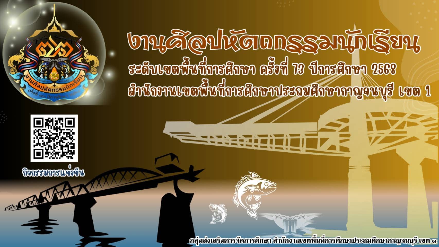 งานศิลปหัตถกรรมนักเรียน ระดับเขตพื้นที่การศึกษา ครั้งที่ 73 ปีการศึกษา 2568 สำนักงานเขตพื้นที่การศึกษาประถมศึกษากาญจนบุรี เขต 1 (แสกน QR Code)