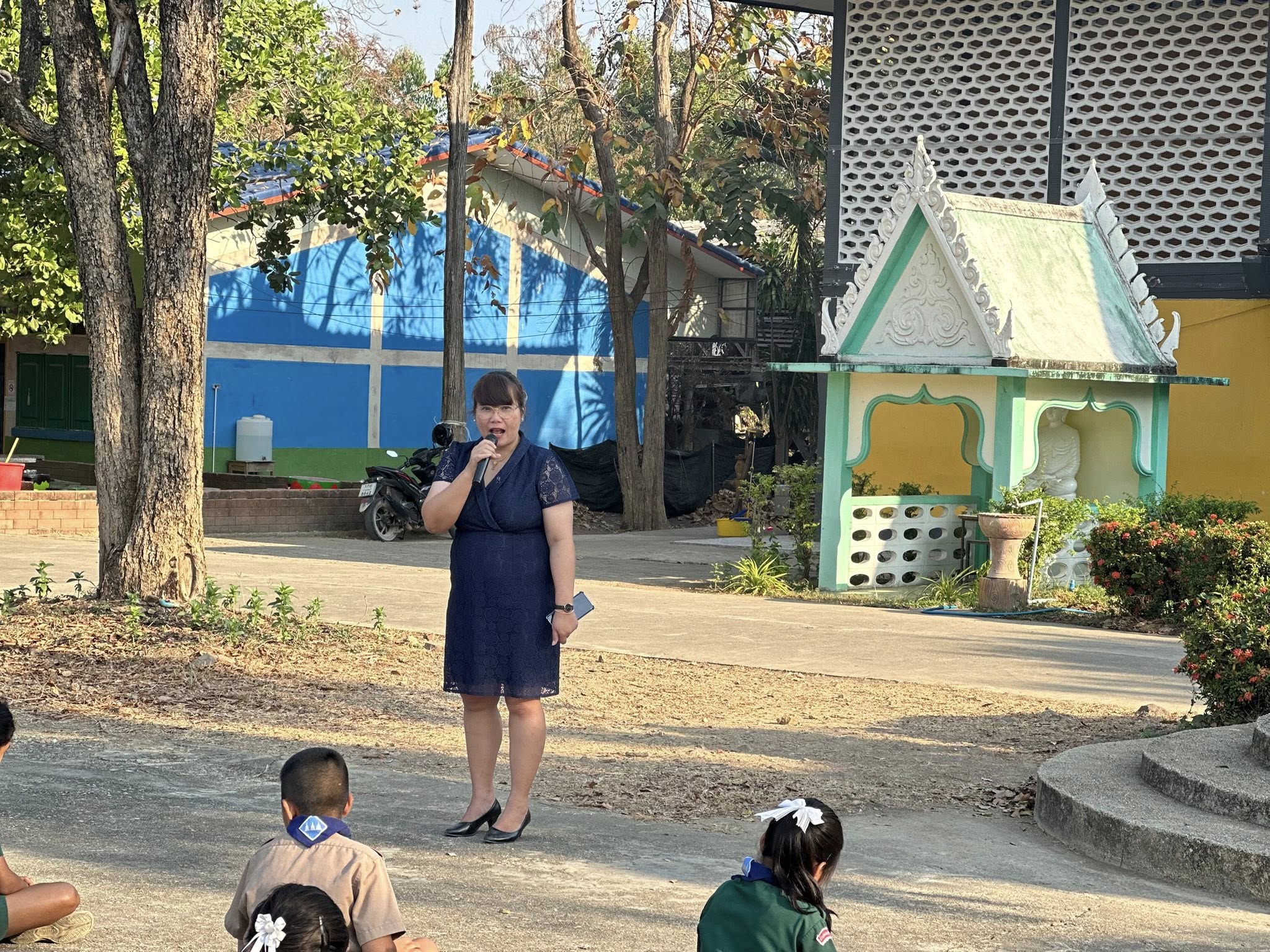 เช้าวันพฤหัสบดี ที่ 12 กุมภาพันธ์ พ.ศ.2569 นางทิพวรรณ ศรท้วม ผู้อำนวยการโรงเรียน ร่วมทำกิจกรรมหน้าเสาธง และพบปะพูดคุยกับนักเรียนในเรื่องของการมาโรงเรียน และการประพฤติปฏิบัติตนในโรงเรียน ให้ถูกต้องตามกฎระเบียบของโรงเรียน