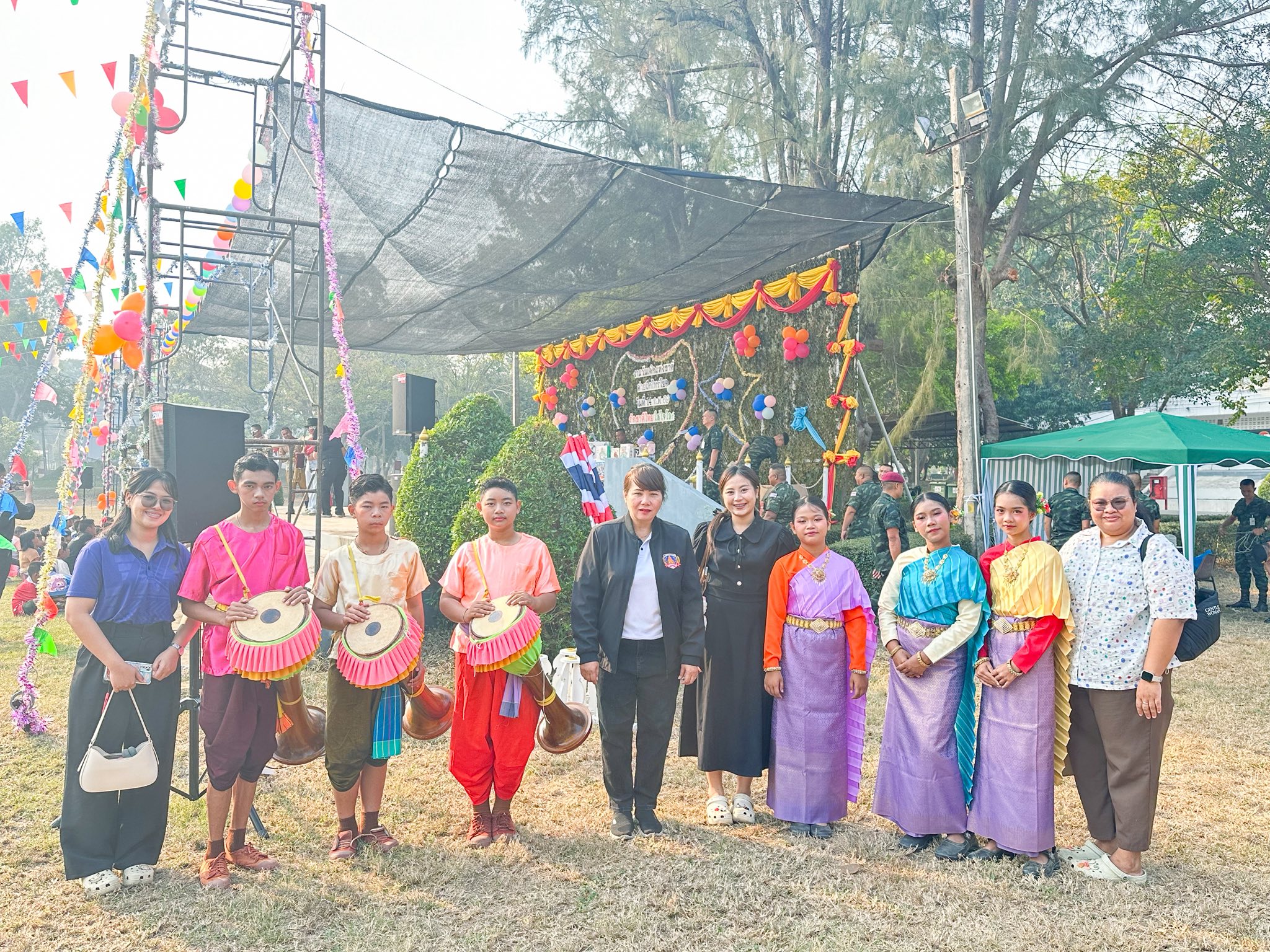 วันเสาร์ ที่ 14 กุมภาพันธ์ พ.ศ.2569 นำโดยนางทิพวรรณ ศรท้วม ตำแหน่งผู้อำนวยการโรงเรียน พร้อมด้วยคณะครูนำนักเรียนเข้าร่วมแสดงพิธีเปิดงานวันเด็ก ประจำปี 2569 ของค่ายฝึกไทรโยค จังหวัดกาญจนบุรี ชุดการแสดง รำเถิดเทิงกลองยาว